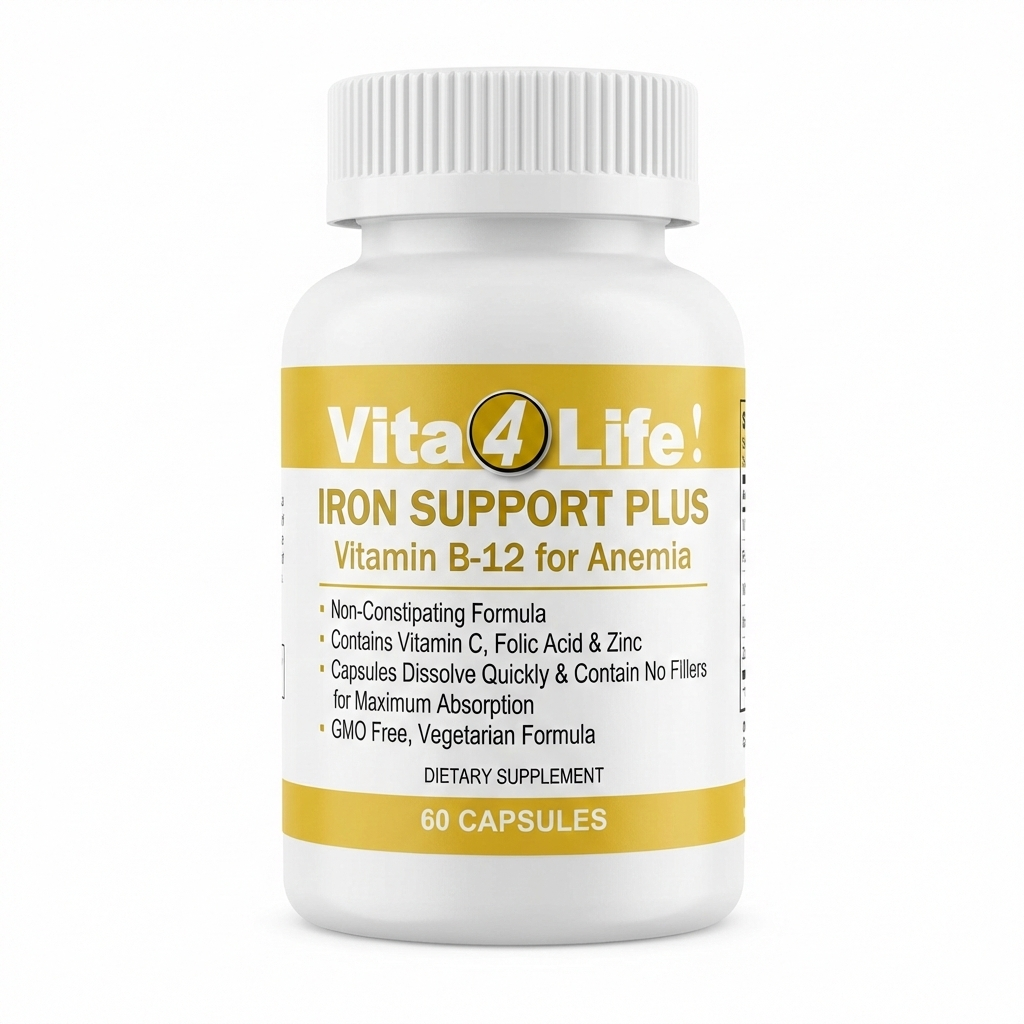 Vita4Life Iron Support is a targeted iron supplement formulated to support healthy iron levels and red blood cell formation.