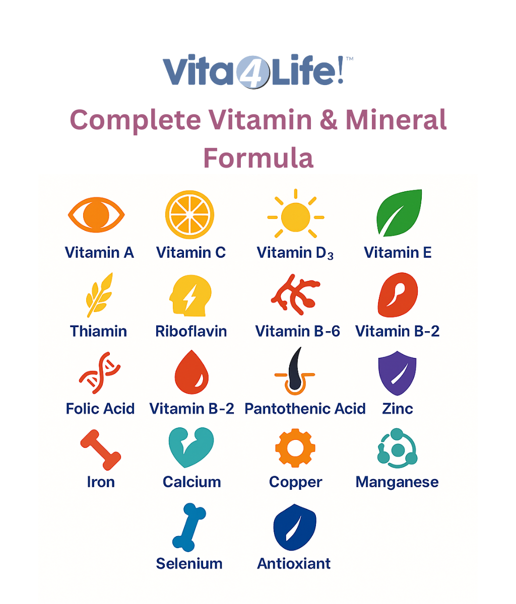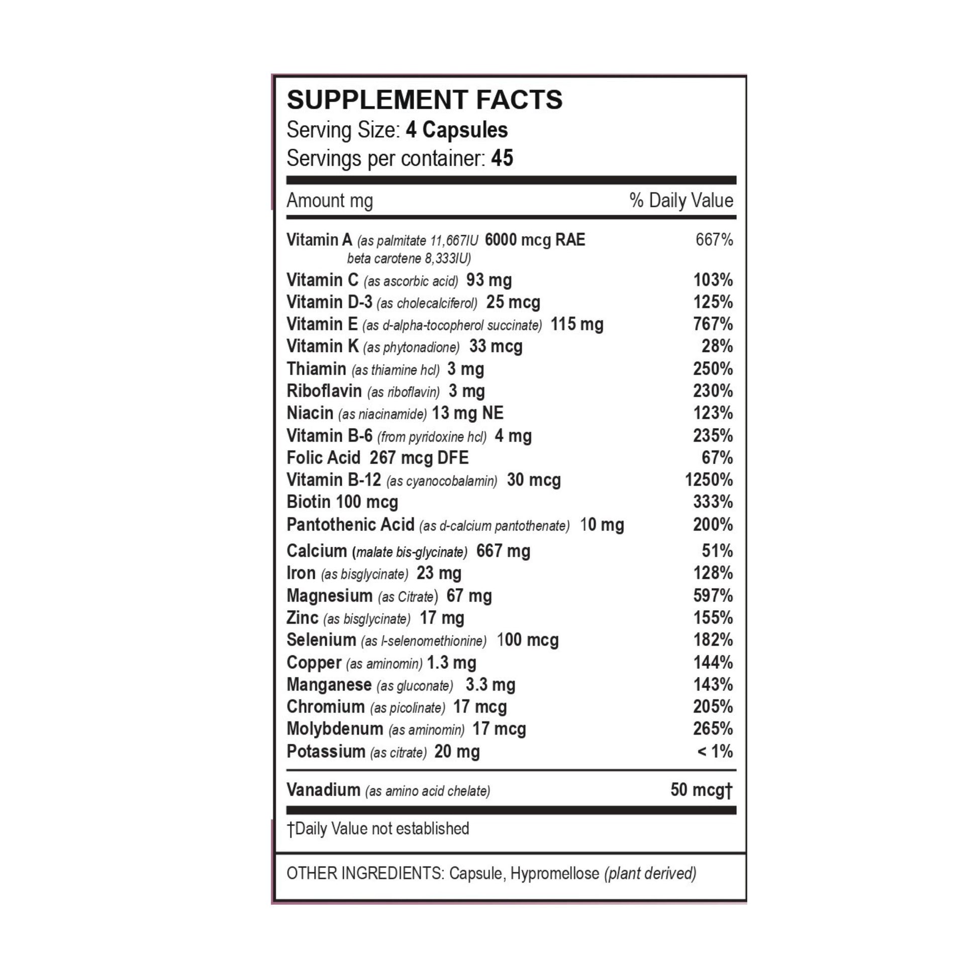 - Provide essential micronutrients in both fat and water-soluble vitamins and amino acid chelated minerals.